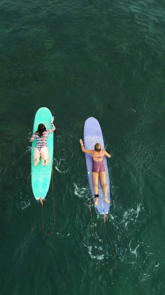 Things picked up swell-wise for the remaining 3 days. We woke up, biked to the boats, and hopped off into a big wave swell and a relatively crowded line-up full of experienced locals. The breaks were bigger than we girls expected, but we all said yes and got ready for a couple of hours of fighting for our lives. There’s something deeply exposing about sitting on a board staring at a moving wall of water. The ocean doesn’t care how confident you look on land. You either commit or get rinsed. I committed to the point that my surf coach realised I was all in and started pushing me onto bigger waves, as I needed more of a rush!