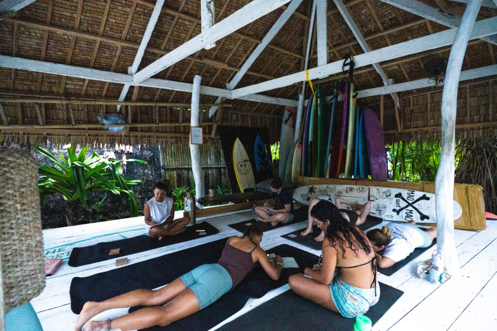 Daily yoga and breathwork cracked us open and reset our bodies and minds. One yoga session stood out to me. We rolled out our mats after a big surf session and started our relaxation and gentle yoga flow, all while the hostel next door was having a full-blown rave. Eyes closed, deep breathing and bass vibrating through our mats. We were practising achieving inner peace to a techno soundtrack. The most juxtaposed combination made us all break into deep belly laughter, and we began bobbing to the beat. None of us to control ourselves and it was the funniest yoga session to date.